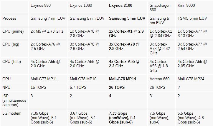 البته اگزینوس 2100 جدید در حال تولید انبوه است. در اینجا نحوه مقایسه آن با نسخه قبلی خود ، Snapdragon 888 و چند مورد دیگر وجود دارد: