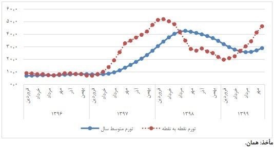 درمجموع، پیش بینی می شود تورم نقطه به نقطه تا پایان سال در حدود 45 درصد و تورم سالیانه در محدوده 38 درصد قرار گیرد که با هدف تورمی اعلام شده بانک مرکزی، فاصله زیادی دارد.