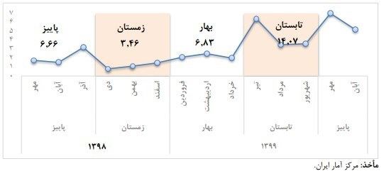 براساس گزارش مرکز پژوهشهای مجلس، رشد شاخص قیمت باعث شده تا تورم نقطه به نقطه در آبان به 46.4 درصد و نرخ تورم متوسط سالیانه به 29 درصد برسد. نکته قابل توجه آنکه شاخص قیمت مصرفکننده در آبان 1399 نسبت به اسفند 1398 ،در حدود 37.15 درصد رشد داشته، یعنی در هشت ماه نخست سال، از هدف تورمی 22 درصد که برای کل سال تعیین شده بود، فاصله بسیاری داریم.