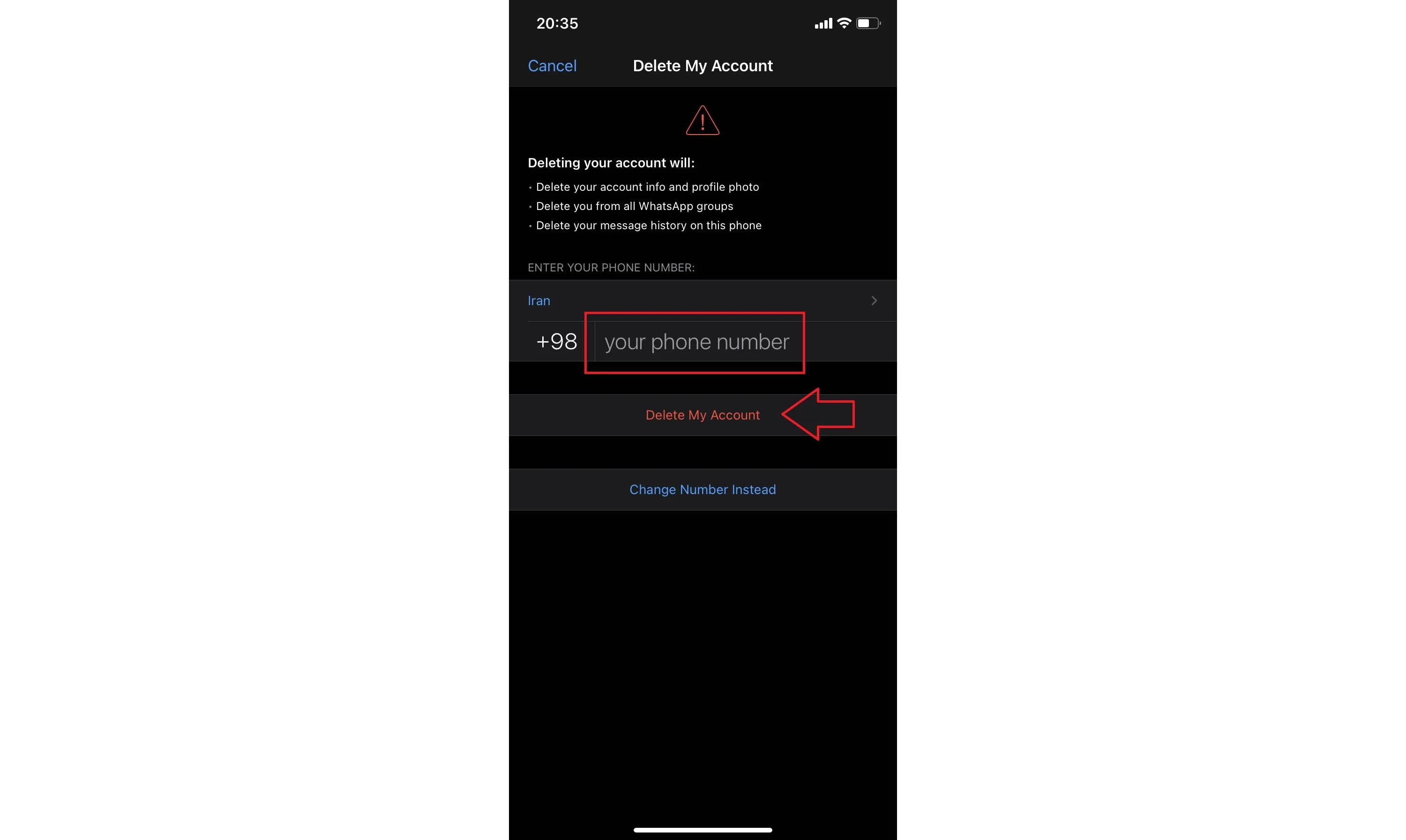 آموزش حذف حساب کاربری واتساپ در iOS و اندروید