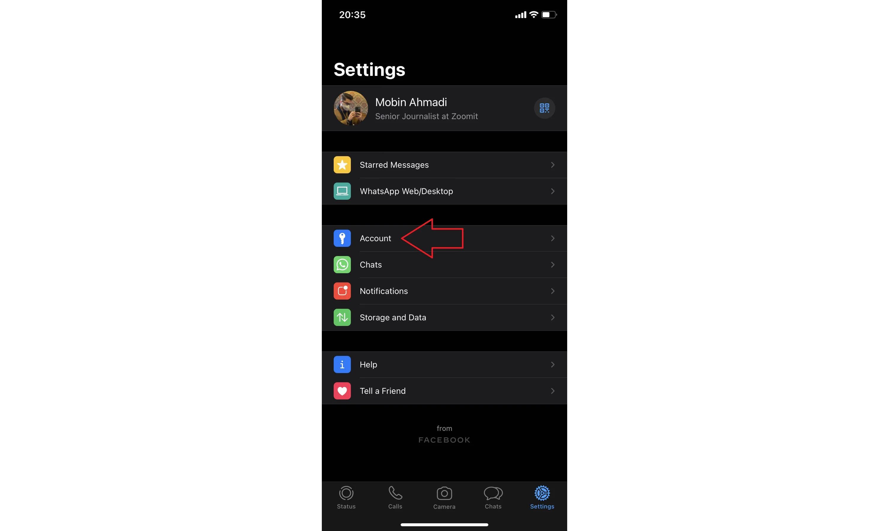 حذف حساب واتساپ روی سیستمعاملهای iOS و اندروید تفاوتهایی جزئی دارد که درادامه به آنها اشاره میکنیم. در نظر داشته باشید اسکرینشاتهای این مقاله به نسخهی iOS واتساپ مربوط هستند.