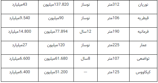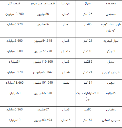 قیمت املاک چند سال ساخت نیز از بیش از 51 میلیون تا 86میلیون تومان قابل خریداری است.
