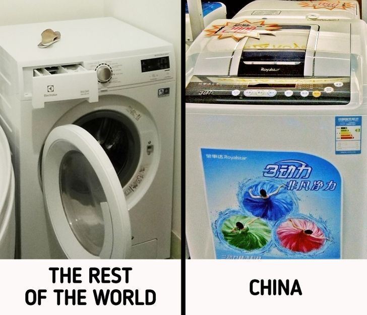 خانههای چینیها ماشین لباسشویی دارند، اما ظاهر و نحوهی کار کردن آنها متفاوت است. این ماشینهای لباسشویی لباسها را با آب سرد میشویند، چون هیچ گرمکنی در آنها تعبیه نشده است. با این حال، میتوانید به صورت دستی به ماشین آب گرم اضافه کنید. در ِ این ماشینهای لباسشویی از بالا باز میشود و دیگ آنها هم به شکل خاصی میچرخد که باعث میشود در نهایت همهی لباسها در هم گره بخورند.