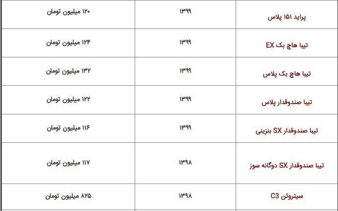 | پژو ۲۰۶ صندوقدار v8 | 235.000.000 |