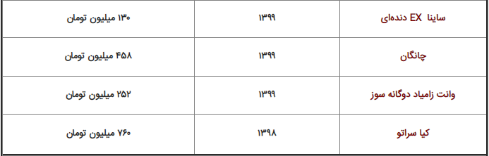 | رنو تندر پلاس اتوماتیک | 415.000.000 |
