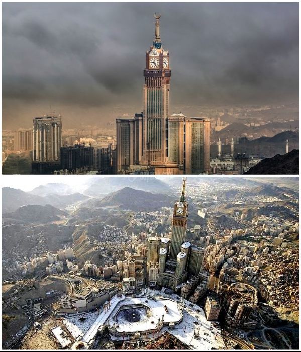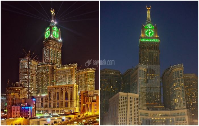 شبها میلیونها چراغ روی برج ساعت (برج رویال ساعت، عربستان سعودی) روشن میشود.