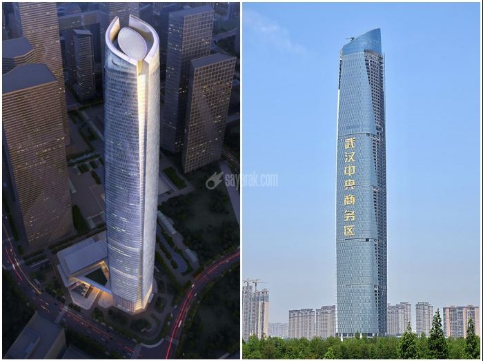 زیبایی باورنکردنی برج مرکز، به معنای واقعی کلمه در تابلوهای شیشهای متحرک وی پنجرهها پیچیده است و به یک گوهر واقعی از شهر چینی ووهان تبدیل شده است. متخصصان انستیتوی طراحی و تحقیقات معماری شرق چین با الهام از شکلهای یک قایق دریانوردی سنتی، تصمیم به ایجاد یک آسمان خراش منحصر به فرد گرفتند که ۴۳۸ متر ارتفاع و در ۸۸ طبقه برج، مکانی برای آپارتمانهای مسکونی، ادارای و یک هتل شیک دارد. علاوه بر این، ویژگی اصلی این پروژه نه تنها شکل اصلی ساخت و ساز بلکه این ساختمان همچنین به دلیل معرفی فناوریهای فوق مدرن صرفه جویی در مصرف انرژی، توسعه و کاربرد عناصر محافظ منحصر به فرد که از قرار گرفتن در معرض نور خورشید، باد و حتی زمین لرزههای شدید جلوگیری میکند، قابل توجه است.