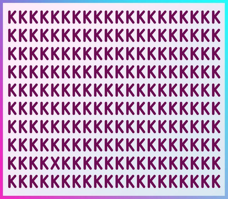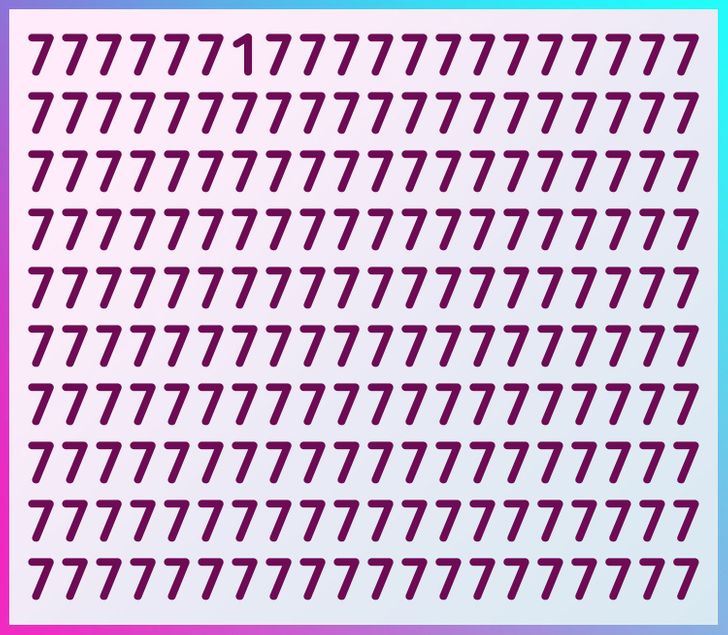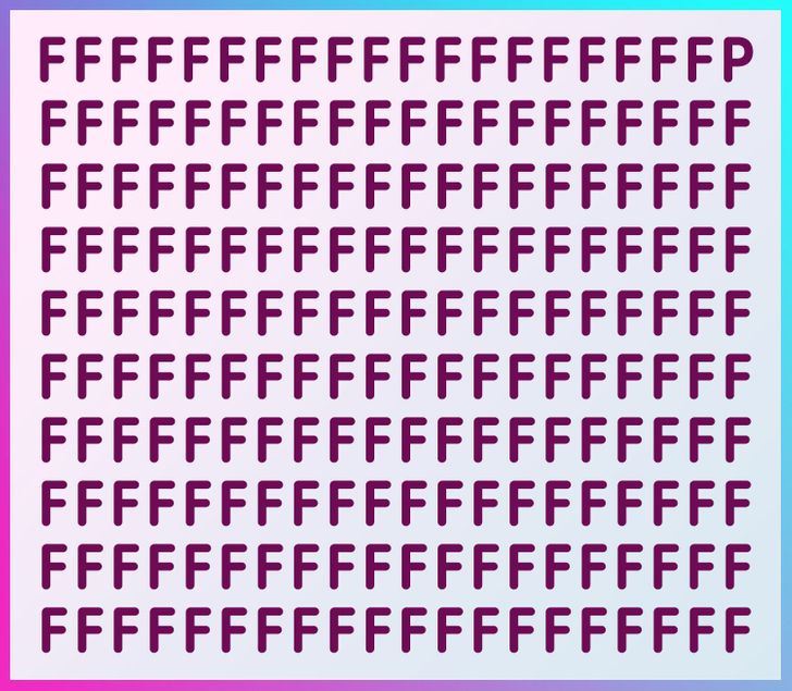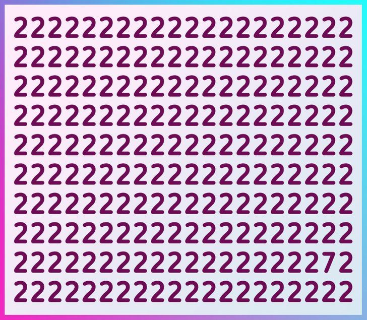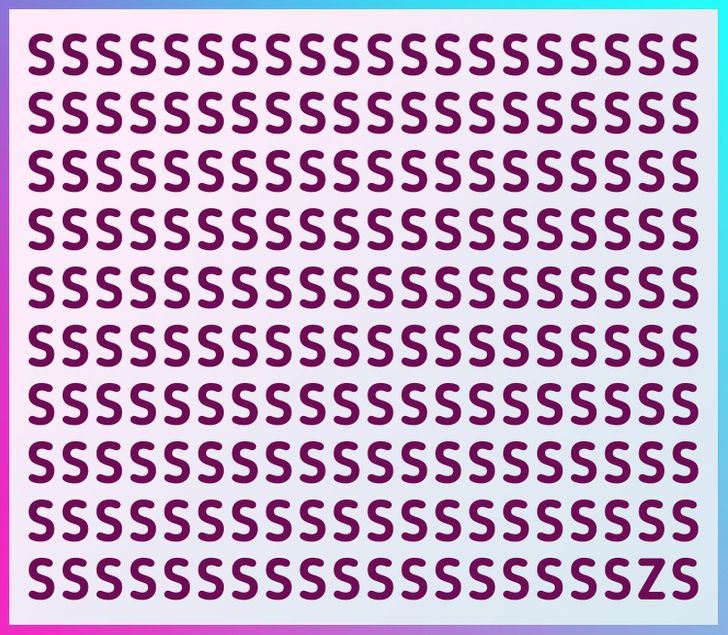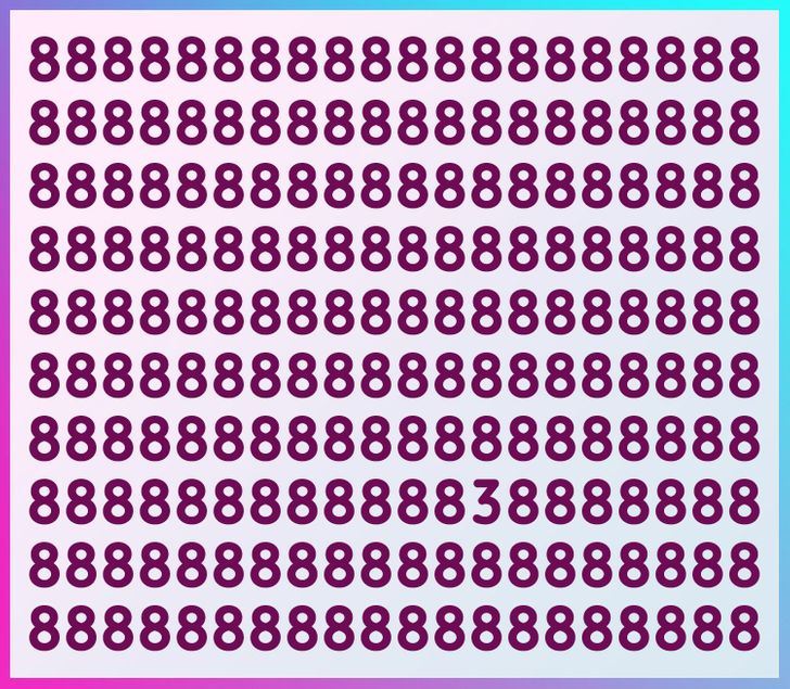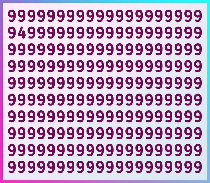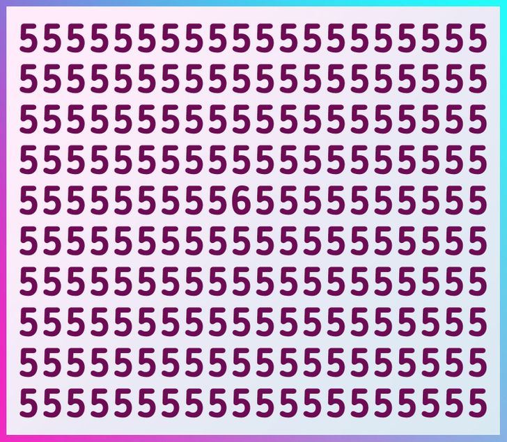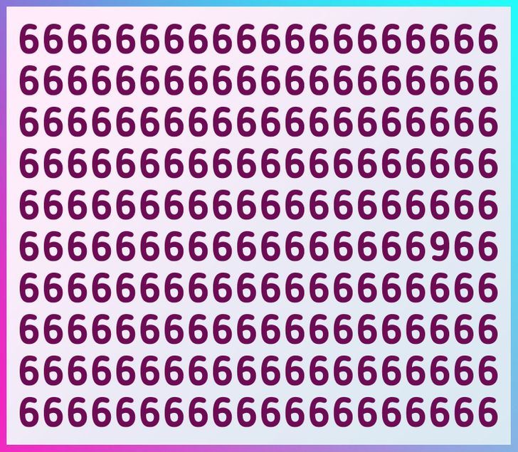 در تست زیر سعی کنید در کمتر از 5 ثانیه حرف یا عدد متفاوت پیدا کنید. اگر زمان پیدا کردن نتیجه برای شما کمتر از 5 ثانیه طول کشید شما چشمان فوق العاده ای دارید.