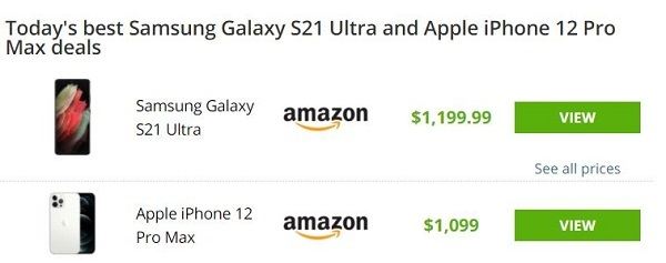 مقایسه قیمت و در دسترس بودن دو گوشی Samsung Galaxy S21 Ultra و iPhone 12 Pro Max