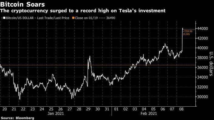 به گزارش موبوایران،پس از اعلام تسلا مبنی بر سرمایهگذاری ۱.۵میلیارد دلاری خود در بیتکوین و آغاز پذیرش آن به عنوان یک روش پرداخت، قیمت این رمز ارز مشهور به بالاترین حد خود رسید.