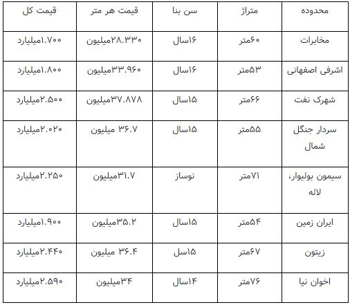 در شهرک نفت نیز یک واحد ۱۵ ساله را متری ۳۷ میلیون و ۸۷۸ هزار تومان و با قیمت کل یک میلیارد و ۸۰۰ میلیون تومان برای فروش آگهی کرده اند.