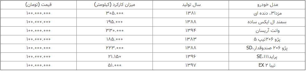 به گزارش سایت طلا،لیست انواع خودرو های ۱۰۰ میلیون تومانی در بازار به شرح زیر است:
