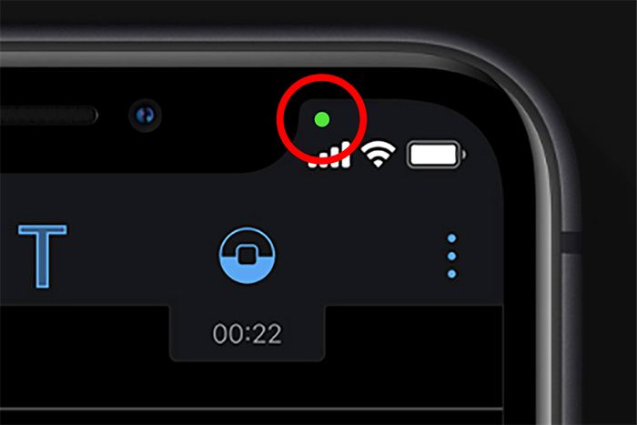 هنگام برقراری یک تماس ویدئویی با فیستایم یا برگزاری یک ویدئو کنفرانس با نرمافزار Zoom، این نقطه نارنجی را روی صفحه آیفون خود مشاهده میکنید. هنگام استفاده از اپلیکیشنهای دیگری مانند اسنپچت، شازم و اوبر نیز این نقطه نارنجی ظاهر میشود.