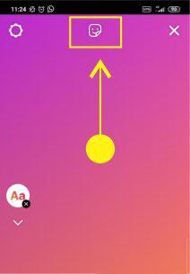 استفاده از این استیکر بسیار آسان است و هیچ تفاوتی با سایر استیکرهای اینستاگرام ندارد. ابتدا وارد بخش استوری شوید و متن، تصویر یا فیلم خود را برای انتشار آماده کنید. سپس همانند شکل زیر، روی آیکون استیکر ضربه بزنید: