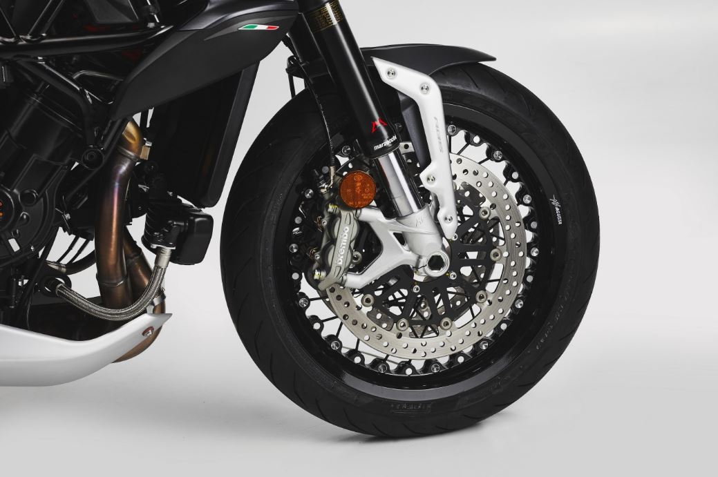 Brutale Rosso از مشخصات فنی سادهتری برخوردار است. پیشرانه سه خطی با خروجی 112 اسب بخار در دور 11,000 rpm، نیرو بخش این وسیله دو چرخ است و اثری از سیستمهای الکترونیکی FLC، لانچ کنترل و ردیاب ماهوارهای هم در آن به چشم نمیخورد.