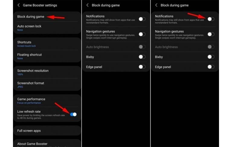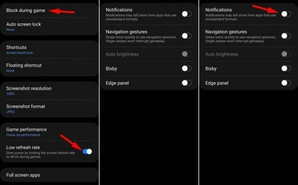 مهمترین گزینههای موجود در این برنامه شامل کاهش رفرش ریت نمایشگر و مسدود کردن اعلانات میشوند که برای بسیاری از گیمرها ضروری هستند. خصوصا رفرشریت پایین که برای ذخیرهی انرژی، نرخ تازهسازی صفحه را حتی تا ۴۸ هرتز هم کاهش میدهد. دسترسی به این قابلیت از دو طریق امکانپذیر است؛ هم خود اپلیکیشن و هم تنظیمات گوشی که میتوانید در تصاویر بالا، مسیر دسترسی به این قابلیت را مشاهده کنید.