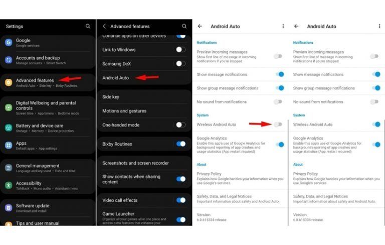 نکتهی شمارهی ۴ کمی غافلگیر کننده بود. چرا که بعد از اندروید ۱۱، در صورتی که ماشین شما از آن پشتیبانی کند، در حالت بیسیم هم در دسترس قرار دارد. برای فعالسازی این قابلیت تنها کافی است وارد تنظیمات شده و در بخش Advanced Features، گزینهی Android Auto و در نهایت هم Wireless Android Auto را انتخاب کنید. با فعال کردن این گزینه دیگر نیازی به اتصال گوشی به ماشین از طریق کابل نخواهید داشت و میتوانید به صورت بیسیم از آن استفاده کنید.
