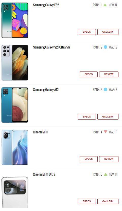 البته در کل، این هفته سامسونگ خوش درخشیده و رده اول تا سوم محبوب‌ترین و پرطرفدارترین گوشی‌های هفته را به خود اختصاص داده است. گوشی Samsung Galaxy S۲۱ Ultra ۵G که هفته قبل هم در این رده قرار داشت باز هم در رتبه دوم دیده می‌شود، درست مثل Galaxy A۱۲ سامسونگ که رتبه سوم هفته پیش خود را حفظ کرده است.