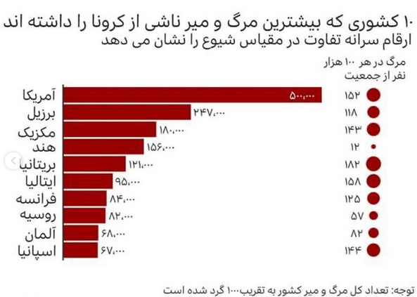 کدام کشور بیشترین میزان مرگ و میر در اثر کرونا را داشته است؟