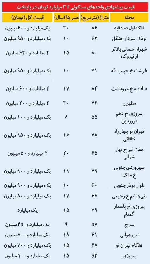 واحدهای کمتر از ۳ میلیارد در پایتخت