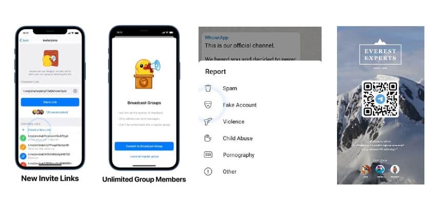 یکی دیگر از قابلیتهای جدید تلگرام، این امکان را در اختیار کاربران قرار میدهد تا لینکهای دعوت را به گونهای ارسال کنند که پس از پیوستن تعداد مشخصی عضو یا گذشت بازه زمانی خاصی (یا هر دو مورد) منقضی شوند. لینکهای دعوت روشی مناسب برای دعوت افراد به گروههای مختلف است. لینکهای دعوت را میتوان به کد QR قابل اسکن نیز تبدیل کرد. بروزرسانی جدید به مدیران اجازه میدهد از تعداد اعضای اضافه شده از طریق هر لینک دعوت را مطلع شوند؛ بدین ترتیب مشخص میشود که از طریق کدام کانال میتوان کاربر بیشتری جذب کرد.