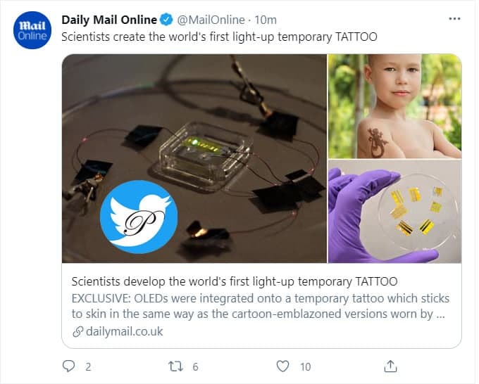 دانشمندان از دانشگاه کالج لندن و موسسهی فناوری ایتالیا یک خالکوبی موقت ساختهاند که از فناوری تولید نور تلویزیونها و تلفنهای هوشمند در آن استفاده شده که راه را برای نسل جدیدی از خالکوبیهای هوشمند با کاربردهای مختلف باز میکند.