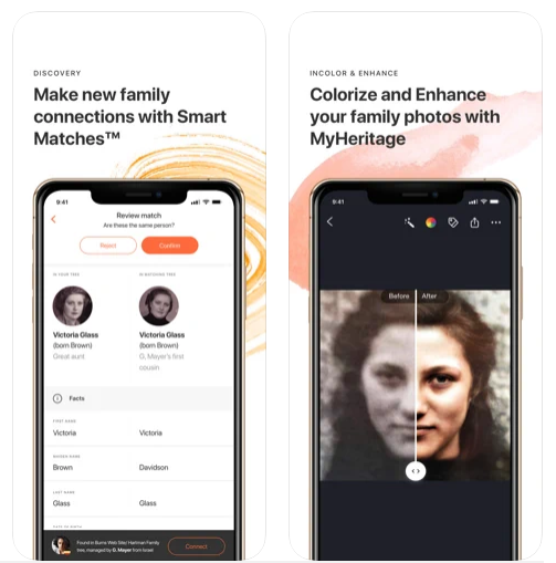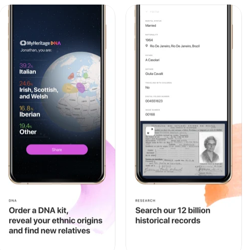 در MyHeritage میتوانید شجرهنامه خانوادگی خود را بسازید، و به شجرهنامه دیگران بپیوندید. خود اپلیکیشن به کمک هوش مصنوعی میتواند بستگان شما را شناسایی کرده و به شما بابت پیوستن به شجرهنامه پیشنهاد بدهد. البته امکان جستجوی دستی هم وجود دارد و به لطف اسناد تاریخی میتوانید به اطلاعات بسیار خوبی درباره اجداد و نیاکان خود برسید.