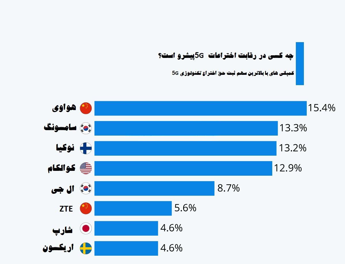 اینفوگرافیک:چه کسی در رقابت اختراعات 5G پیشرو است؟