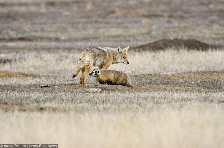 4. گرگ های صحرایی (کایوتی) و گورکن ها با یکدیگر دوست و همکار هستند و همراه با یکدیگر به شکار می روند.