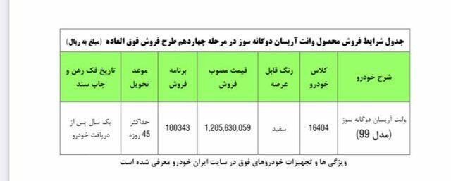 به گزارش سایت طلا،در چهاردهمین مرحله از فروش فوقالعاده ایرانخودرو، برخلاف روال همیشگی فروشهای فوقالعاده که با قیمت قطعی و با موعد تحویل ۹۰ روزه اجرا میشوند؛ اینبار ایرانخودرو قصد دارد محصول وانت آریسان دوگانهسوز را با قیمت قطعی و موعد تحویل ۴۵ روزه عرضه کند.