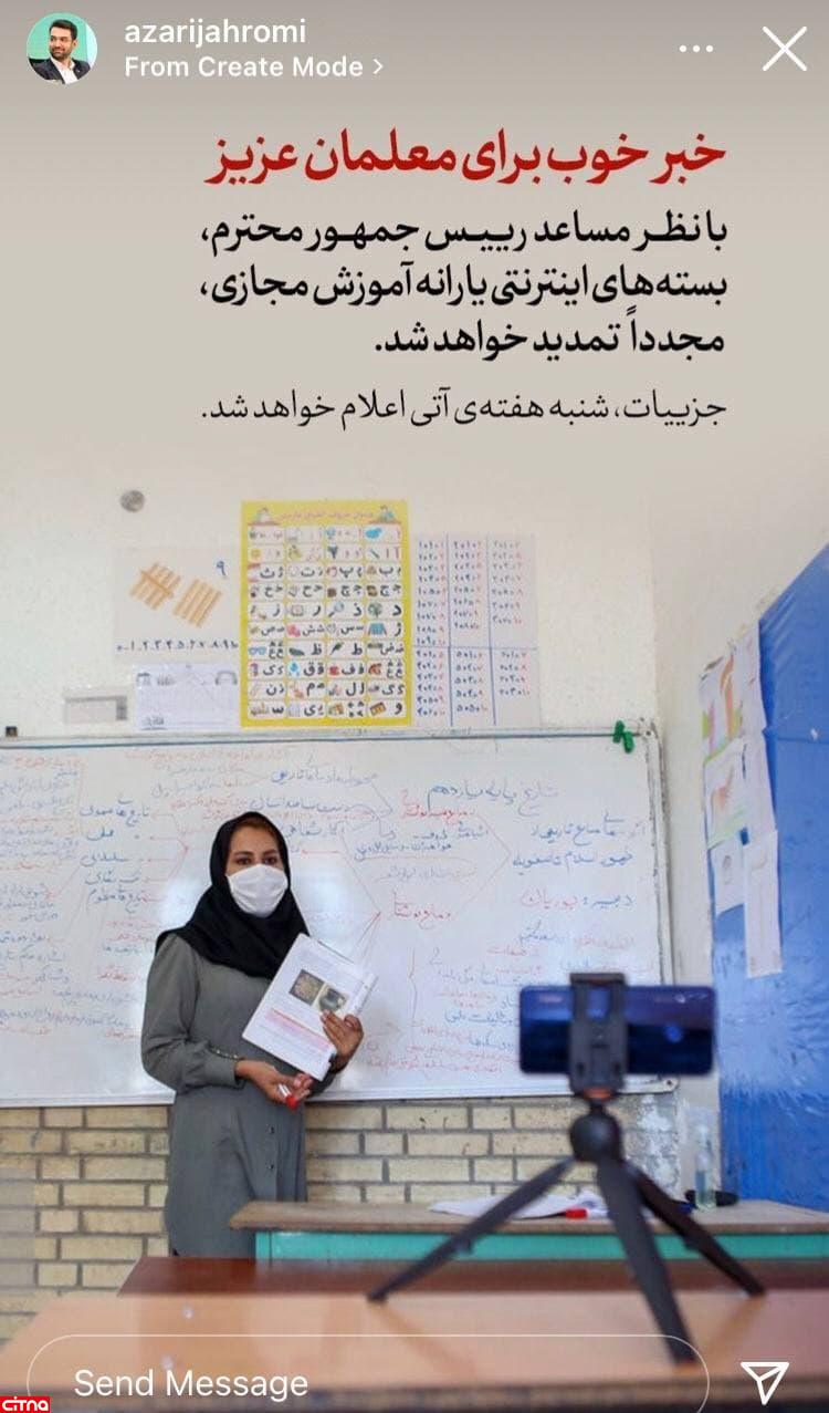 آذری جهرمی از تمدید بستههای اینترنتی برای معلمان خبر داد.