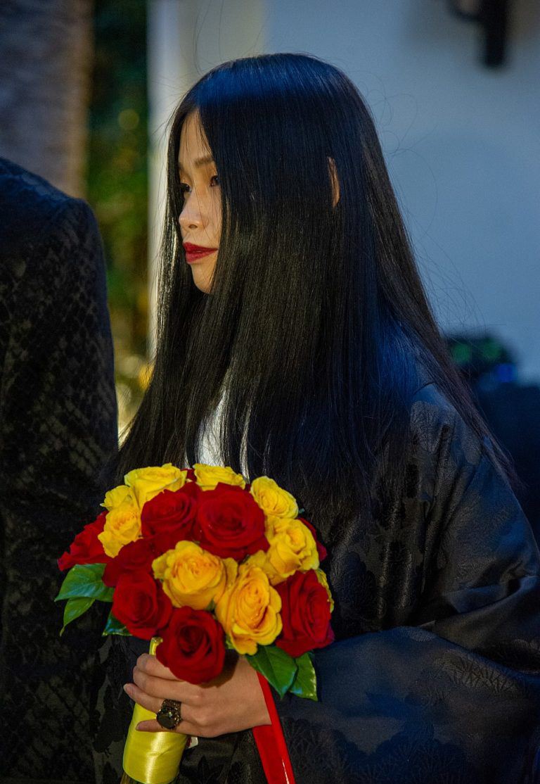 در این مراسم عروسی، عروس یک کیمونو ژاپنی سیاه رنگ دست دوز و مخصوص عروسی پوشیده بود که دارای سه لایه بوده و از کیوتو سفارش داده شده بود. او همچنین یک دسته گل زرد و سرخ داشت که با رنگ رژ لب قرمز روشنش هماهنگ شده بود. کیج نیز یک کت و شلوار مشکی تام فورد با رز زرد روی سینه به تن کرده بود تا با دسته گل عروس هماهنگ باشد. پیش از اعلام وفاداری، آهنگی از کیورو به نام Winter پخش شد که آهنگ مورد علاقه عروس بوده و سپس این دو به رسم سنتی مذاهب کاتولیک و شینتو، وفاداریشان را به یکدیگر اعلام کردند. این دو که حدود یک سال پیش در شیگا، ژاپن با هم آشنا شده اند، بعد از مراسم عروسی یک جشن کوتاه داشته که آلیس کیم، همسر سوم کیج نیز در آن حضور داشت.