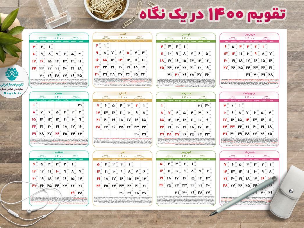 تقویم کامل سال ۱۴۰۰ در یک عکس