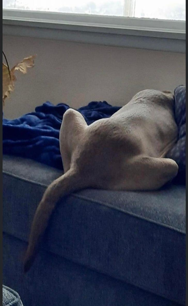 2. در نگاه اول به نظر می رسد که یک بچه فیل در این عکس قرار دارد اما در واقع یک سگ روی مبل دراز کشیده است.