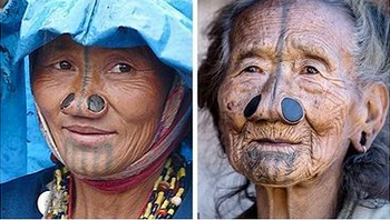 تونل بینی: زنان قبیله آپاتانی در حالت انقراض قرار داشتند زیرا زنان این قبیله بسیار زیبا بودند و مردان قبایل دیگر به آن ها حمله می کردند و زنان را با خود می بردند زنان برای ازبین بردن زیباییشان درون بینی هایشان مهره های زشت گذاشته و صورت هایشان را خالکوبی می کردند.