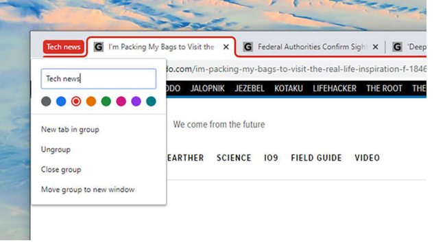 یکی از جدیدترین قابلیت هاش اینه که میتونید کالکشنی از تب ها بسازید با اسم‌ها و رنگ های منحصر به خودشون. روی هر تبی که خواستید راست کلیک کنید و روی گزینه "add tab to new group" کلیک کنید.
