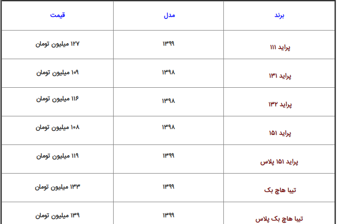 | پژو ۲۰۶تیپ ۲ (ساده) | 188.000.000 |
