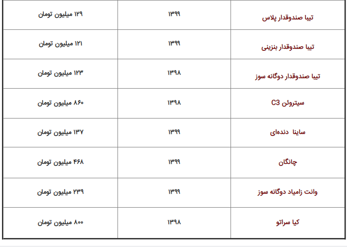 | پژو ۲۰۶ صندوقدار v8 | 243.000.000 |