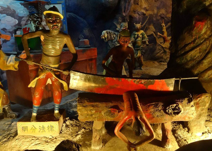 وحشتناکترین و البته پربازدیدترین بخش این پارک، موضوعی جهنمی دارد و از افسانههای چینی الهام گرفته شده است. در این بخش، بازدیدکنندگان شجاع با «ده دادگاه جهنم» (Ten Courts of Hell) روبهرو میشوند که نیت اصلی آنها آموزش اخلاقیات و رفتار به کودکان است؛ اما نحوهی نمایش مجازات سهمگینی که در جهنم انتظار گناهکاران را میکشد، حتی بزرگسالان را منقلب میکند و به هیچ عنوان برای کودکان مناسب نیست.