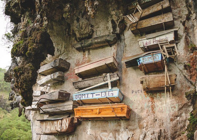 اگر روزی گذرتان به منطقهی کوهستانی ساگادا در فیلیپین، فوجیان در چین یا جزیرهی سولاوسی در اندونزی افتاد و هوس کردید به زیارت اهل قبور بروید، یادتان باشد که به جای زیر پایتان باید بالای سرتان را نگاه کنید؛ چون مردمان این مناطق رسم دارند مردگان خود را در تابوتهای آویخته از کنارههای صخره قرار بدهند.