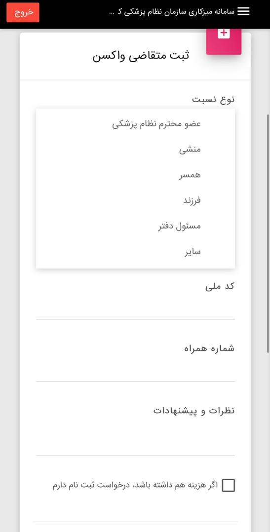 اما، با ورود به سامانه نظام پزشکی و ورود به صفحه ثبت نام پزشکان، میبینیم که سازمان نظام پزشکی بخشی را برای ثبت نام همسر، فرزند، منشی و مسوول دفتر پزشکان فراهم کرده است.