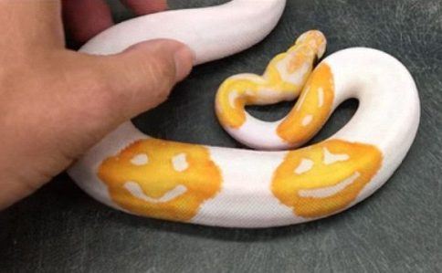 مار پیتون که طرح ایموجی خنده روی بدنش دارد!