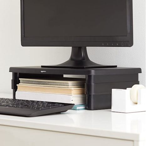 با این حال، همه مانیتورها از نظر ارتفاع قابل تنظیم نیستند و مقدار کمی از میز را اشغال می کنند. پایه زیر مانیتور یا رایزر (riser) راهی برای حل آن است. یک مدل ساده و در عین حال موثر، مدل آمازون بیسیک است که دارای پایه های قابل انعطاف برای قد مورد نظر شما (تا 4 اینچ) به علاوه فضای ذخیره سازی گسترده 11 اینچ در زیر آن برای ذخیره لپ تاپ یا سایر وسایل است.