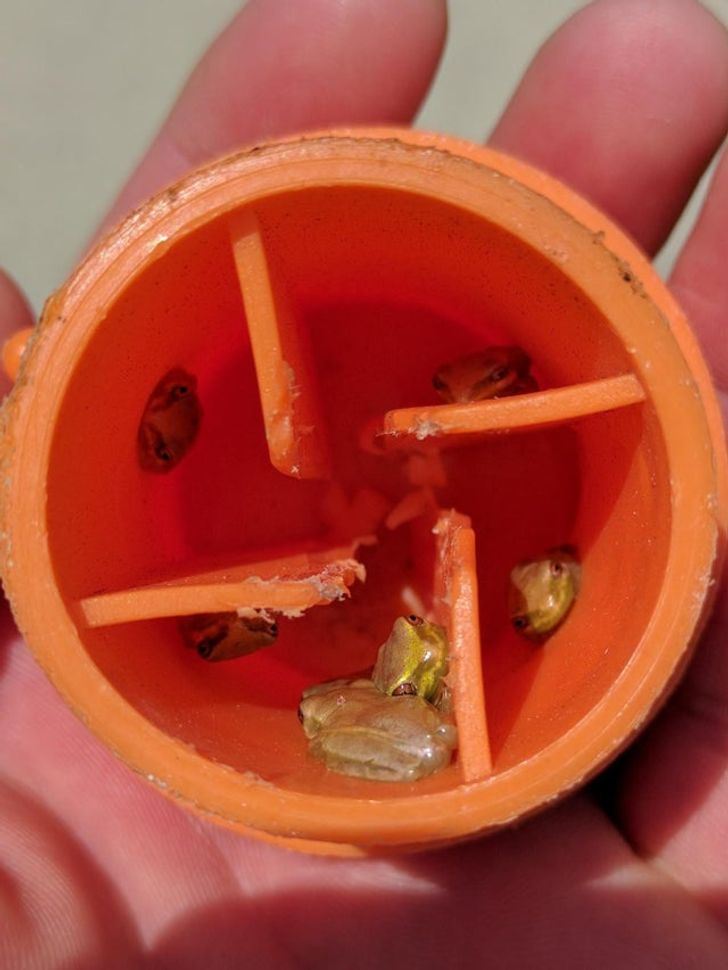 9. این قورباغه های کوچک در حالی پیدا شده اند که در، درپوش سک میله فولادی مخفی شده بودند.