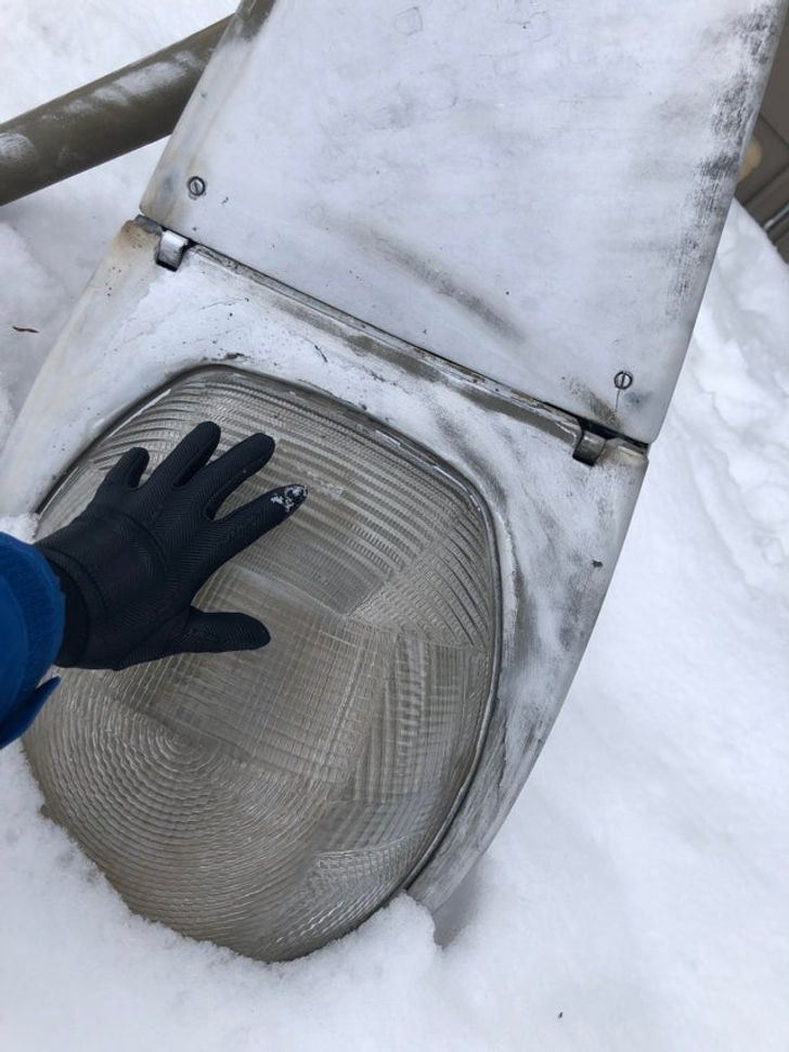 13. یک چراغ خیابان که بر اثر بارش برف سقوط کرده