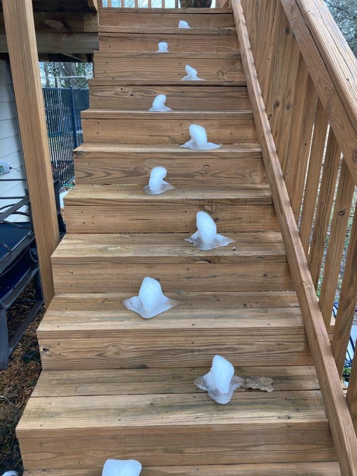 4. این رد پا بر روی پله ها بر اثر ذوب شدن برف به وجود آمده است و کسی آن را ایجاد نکرده است.