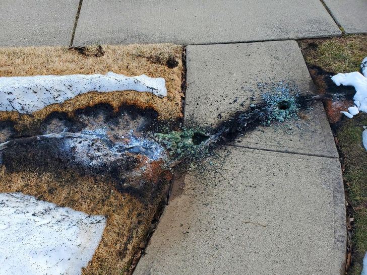 8. یک سیم برق فعال بر روی پیاده رو افتاده و باعث شد تا نه تنها یخ ها ذوب شوند، بلکه توانست شن های موجود زیر برف را تبدیل به شیشه کند.