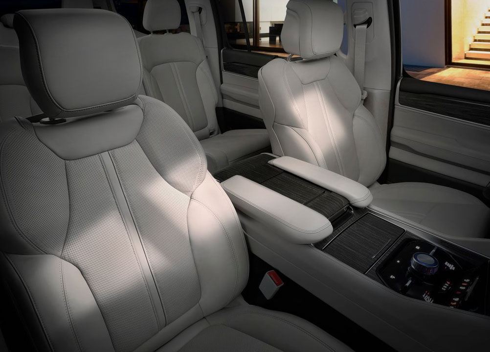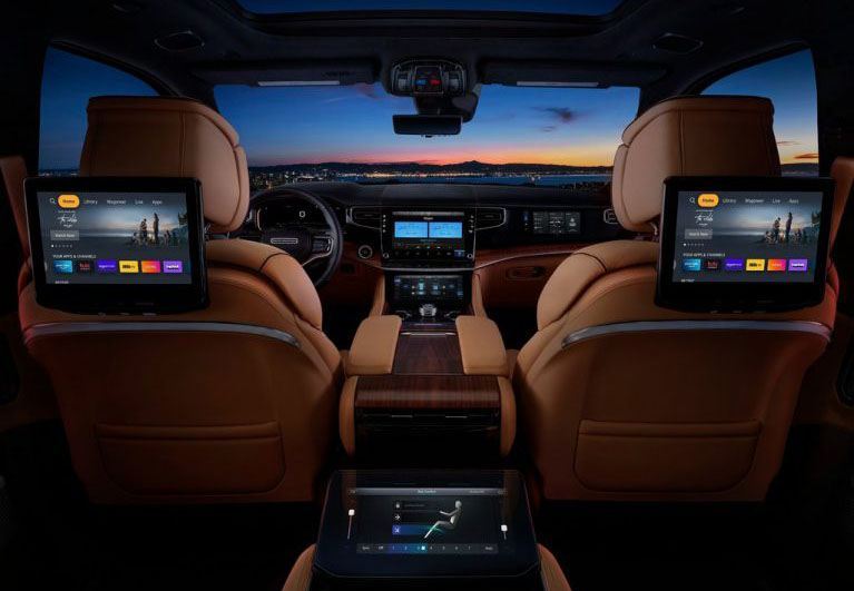 در گرند واگنییر، صندلیهای دو ردیف اول بهصورت استاندارد از نوع خلبانی هستند و یک کنسول مرکزی ثابت از ردیف جلو تا ردیف دوم کشیده میشود؛ اما خانوادههای پرجمعیتتر میتوانند صندلیهای نیمکتی را هم برای ردیف دوم سفارش دهند که ظرفیت سرنشین خودرو را به حداکثر هشت نفر میرساند. این در حالی است که در واگنییر، صندلیهای ردیف دوم بهصورت استاندارد از نوع نیمکتی هستند و صندلیهای خلبانی برای آن قابل سفارش است. در گرند واگنییر، سرنشینان ردیف دوم برای سرگرمی از دو نمایشگر ۱۰.۱ اینچی برخوردار خواهند بود که روی پشتی صندلیهای جلو نصب میشود. این نمایشگرها میتوانند به منابع صوتی و تصویری متفاوتی دسترسی داشته باشند. علاوه بر این، در مدلهایی که در ردیف دوم به صندلیهای خلبانی مجهز هستند، یک نمایشگر رفاهی ۱۰.۳ اینچی هم در کنسول مرکزی عقب قرار میگیرد تا مجموع نمایشگرهای کابین گرند واگنییر را به هفت عدد برساند.