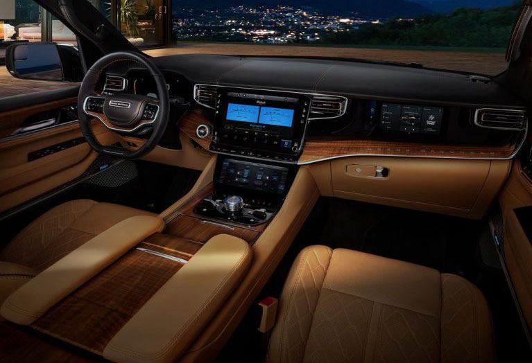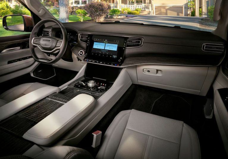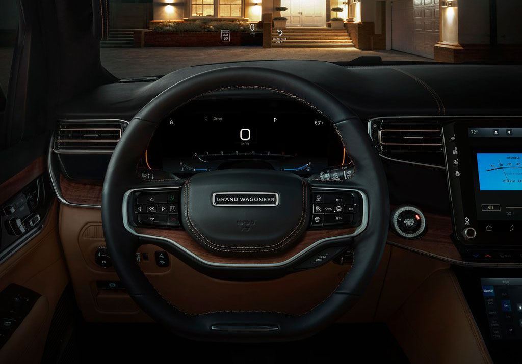 در داخل، طراحان جیپ سعی کردهاند از طریق یک غربیلک فرمان دو پره و دریچههای تهویهٔ افقی، به واگنییر اولیه ادای احترام کنند اما بااینحال کاملاً مشخص است که با یک اسیووی کاملاً مدرن طرف هستیم. در اینجا صفحه آمپر بهصورت استاندارد از نوع دیجیتالی است که در واگنییر ۱۰.۳ اینچی و در گرند واگنییر ۱۲.۳ اینچی خواهد بود. در میانهٔ داشبورد واگنییر، یک نمایشگر لمسی ۱۰.۱ اینچی استاندارد سیستم اطلاعاتی-سرگرمی Uconnect 5 را ارائه میکند که یکی از آسانترین سیستمهای بازار برای استفاده است. علاوه بر این، یک صفحهنمایش ۱۰.۳ اینچی هم برای کنترل سیستم تهویه و سایر ویژگیهای رفاهی خودرو قابل سفارش خواهد بود که در پایین کنسول میانی قرار میگیرد.