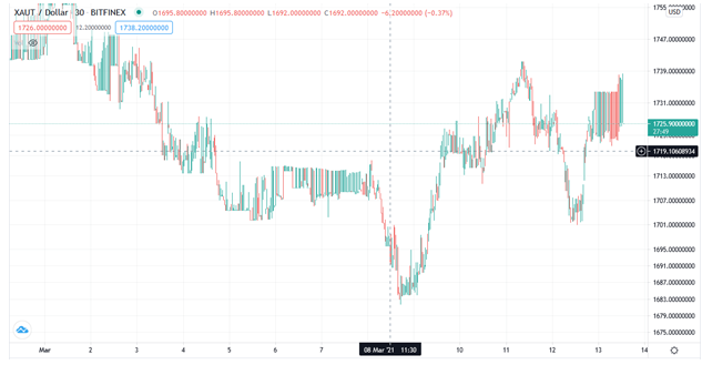 به گزارش سایت طلا،دو فاکتور اصلی تاثیر گذار بر قیمت دلار این روزها، وضعیت خزانه داری آمریکا و قیمت دلار می باشد. خزانه داری آمریکا پس از امضای طرح حمایتی بایدن، درصد سود را افزایش داده است و از عوامل موثر در افت قیمت طلا و فلزات ارزشمند دیگر مانند نقره است. در تاریخ دوشنبه 8 مارچ، قیمت طلا به پایین ترین حد خود یعنی 1672 $ رسید. از 9 مارچ تا 11 مارچ قیمت طلا شاهد روندی صعودی بوده است. بررسی این 3 روز نشان می دهد علاوه بر سیل خریدارن در قیمت پایین طلا، ضعف قیمت دلار به دلیل خالی شدن خزانه آمریکا هم به این روند صعودی طلا کمک کرده است.
